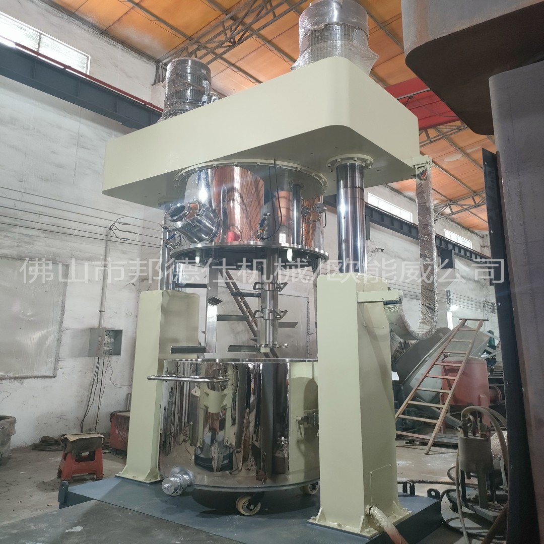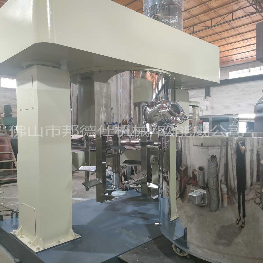 1.適用產(chǎn)品范圍廣,帶低速攪拌及高速分散功能 ,同時攪拌及分散部件進行公轉(zhuǎn),刮邊刮底使攪拌較加充分,釜內(nèi)可抽真空及保壓,高粘度、低粘度產(chǎn)品均可適用,可按客戶工藝要求定制釜體形式,滿足客戶產(chǎn)品調(diào)溫需求。